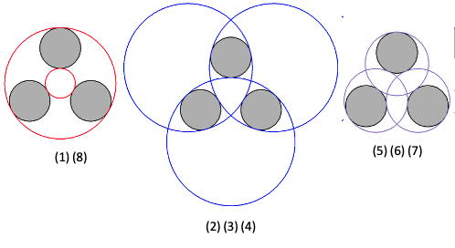 (6) the circles in the inside, the circle on the outside,