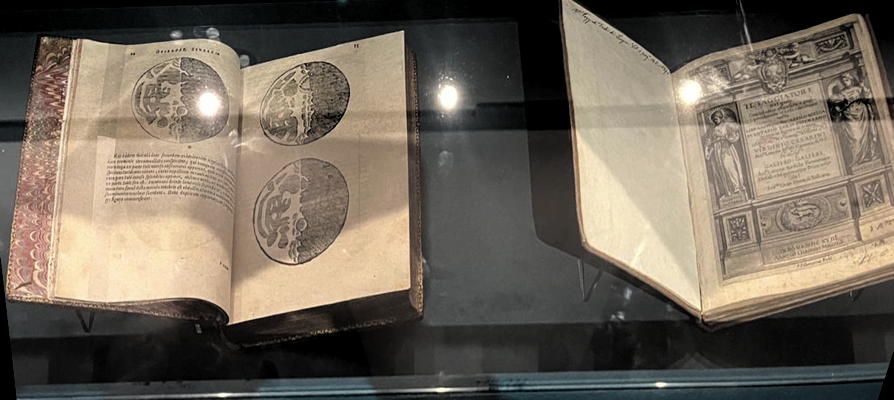 The Museum contains several books by Galileo. Here is a picture I took of the first volume of the Opere (1656), the Sidereus nuncius (from this 1656 Opere) and the Il saggiatore (1623)
