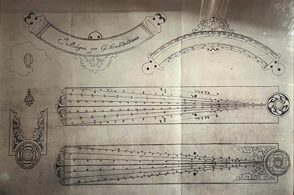 The splendid building as we see it today was designed in the first half of the 17th century by Michelangelo Buonarroti the Younger. The house was decorated by famous artists to glorify the family and its illustrious ancestor. In the "Studio", the rich iconography also shows clear references to science. Domenico Pugliani portrayed the physicists and the simplists, Cecco Bravo (Francesco Montelatici) portrayed the mathematicians and astronomers. In the latter fresco can be seen, along with scientific instruments such as an armillary sphere and a quadrant, the figure of Galileo Galilei, who with his telescope and an open book before him is showing the surface of the Moon, probably an allusion to the Sidereus nuncius [Starry Messenger] (Venice, 1610). The work was completed in the years 1633-1637, that is, while Galileo was still alive and had already been condemned by the Court of the Inquisition. The patron thus showed remarkable courage in celebrating a man who was at the time "strongly suspected of heresy".